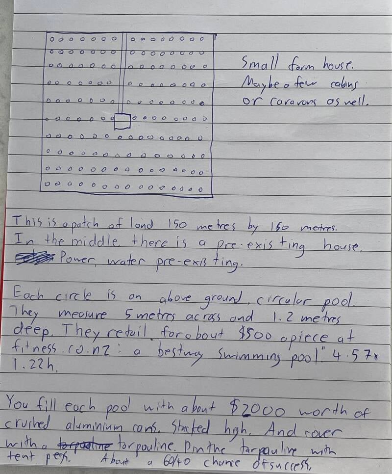 edit: you could also just place dozens of cabins/sheds in amongst the the swimming pools, if that's what you wanted? It's still a skunkworks though. Relatively untested.