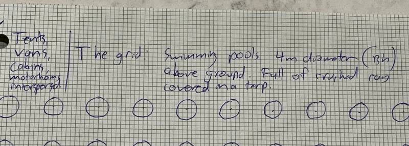 Just fill the space with cabins and tents!!!! It's a refugee camp!!! It's suitable for homeless em (electromagnetic) refugees in places like Berlin, Los Angeles, New York, Washington DC, Nigeria, Denver, Seattle or wherever. You could also fill the place with vans and caravans. Maybe a few plumbed toilet blocks as well. And a few good places to fill up bottles, cans and buckets with water. Also, a diesel generator or two might be useful, and good lighting. But that is perhaps too much to expect for homeless encampments. Places like Syria, Pakistan and the Phillipines might also be suitable. They have a lot of homeless people there. Lead with compassion, offer refuge. Then worry about politics second.